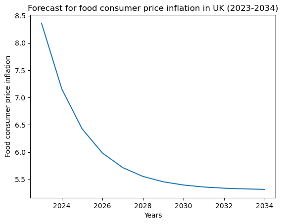Forecasting consumer food prices inflation in the UK from 2023 to 2034