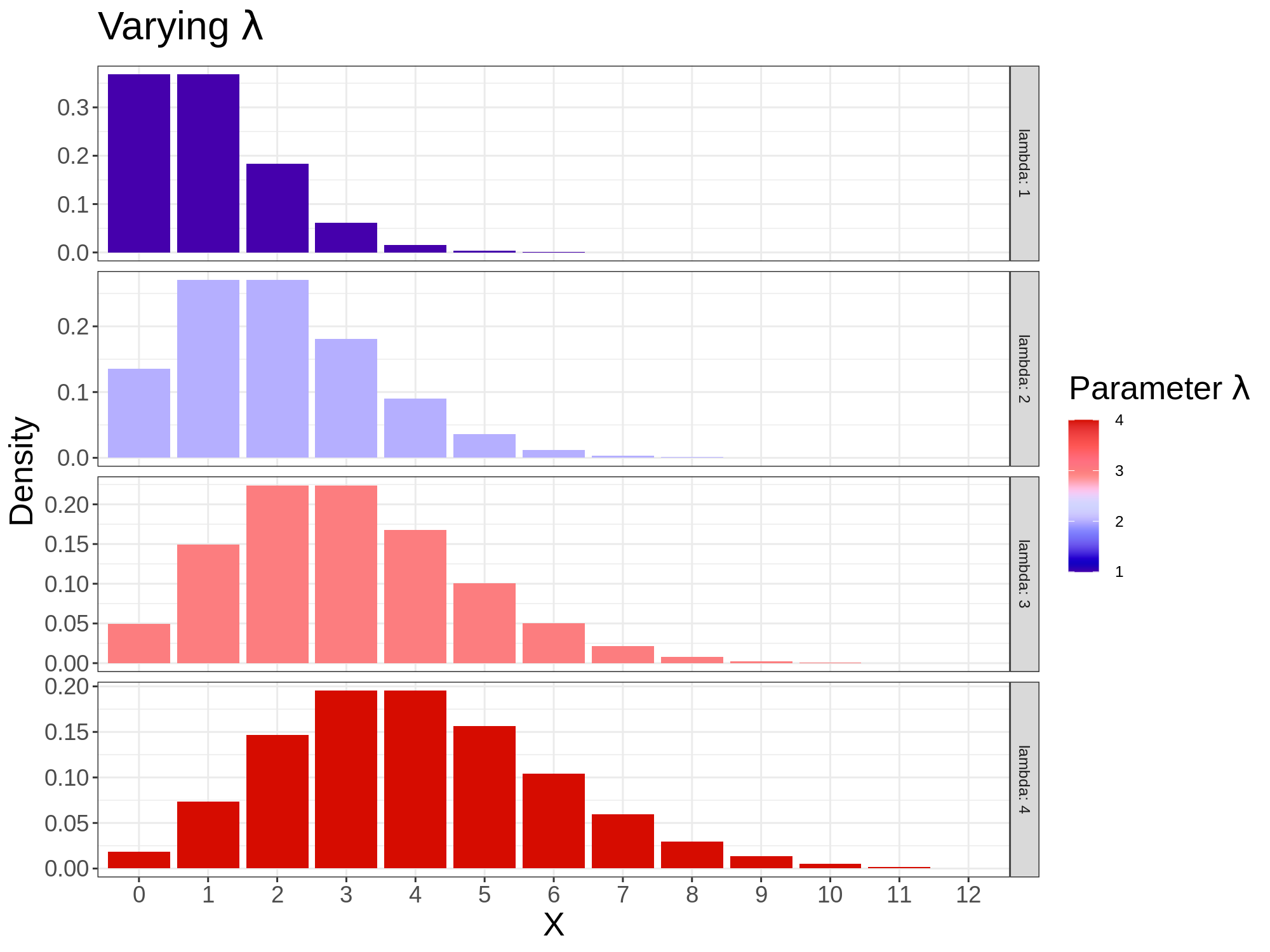 \[ f(x) = \frac{\lambda^xe^{-\lambda}}{x!} \]