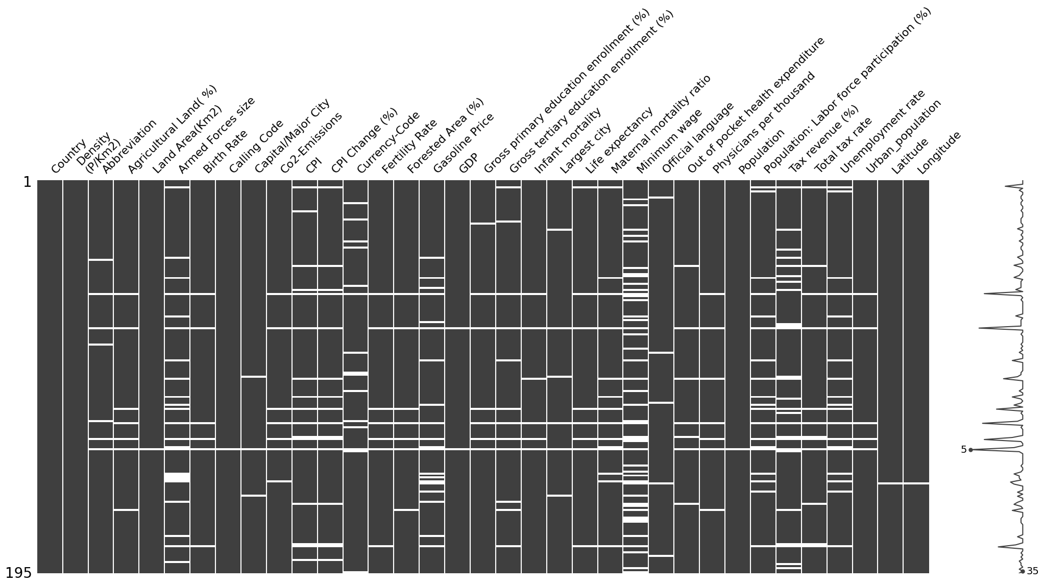Missingness patterns in the data