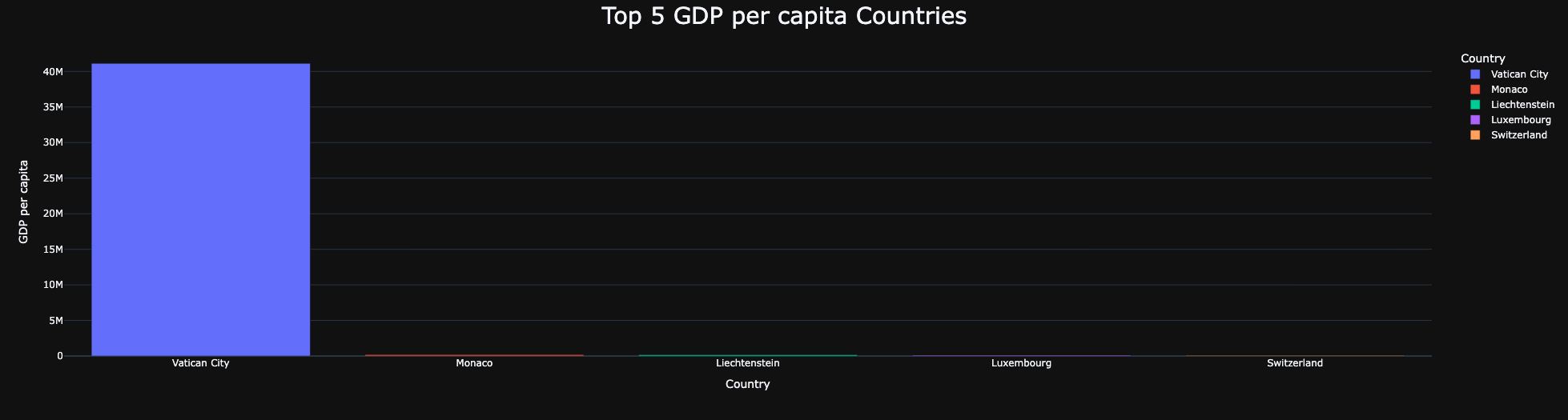 fig1.update_layout(title = 'Top 5 GDP per capita Countries',title_x = 0.5,title_font = dict(size=29))# update title