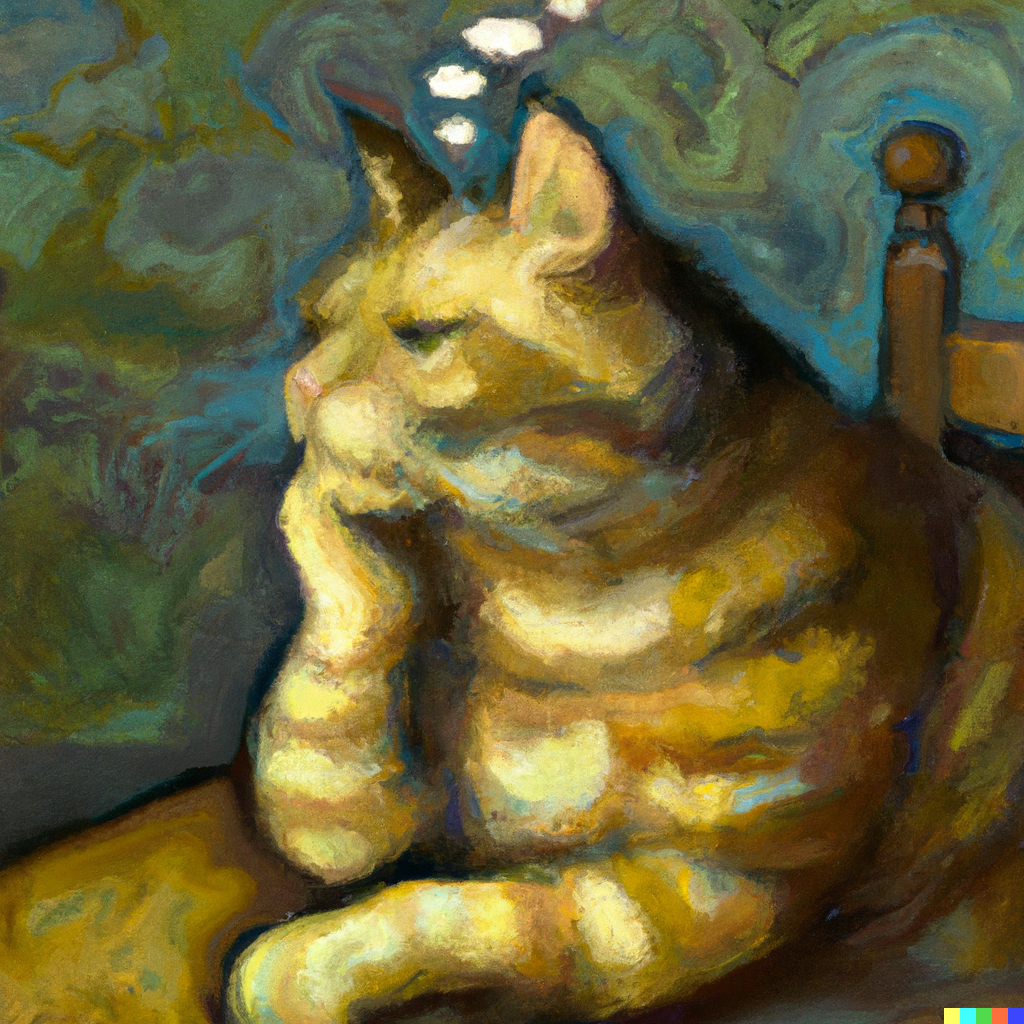 “A dignified cat thinking hard about existential questions, Van Gogh painting”