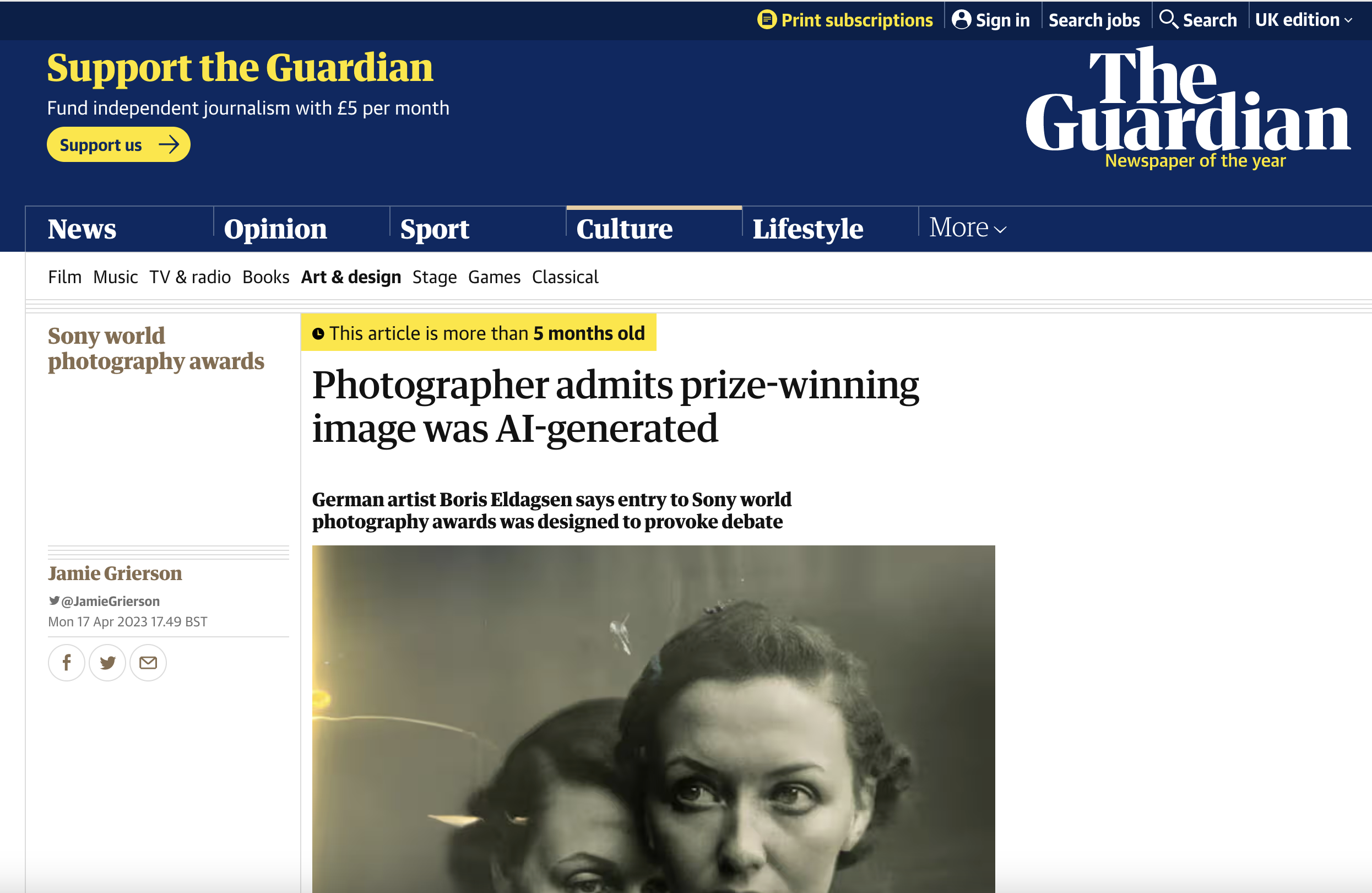 Boris Eldagsen’s award-winning picture “Pseudomnesia: The Electrician” at the Sony world photography awards (2023).