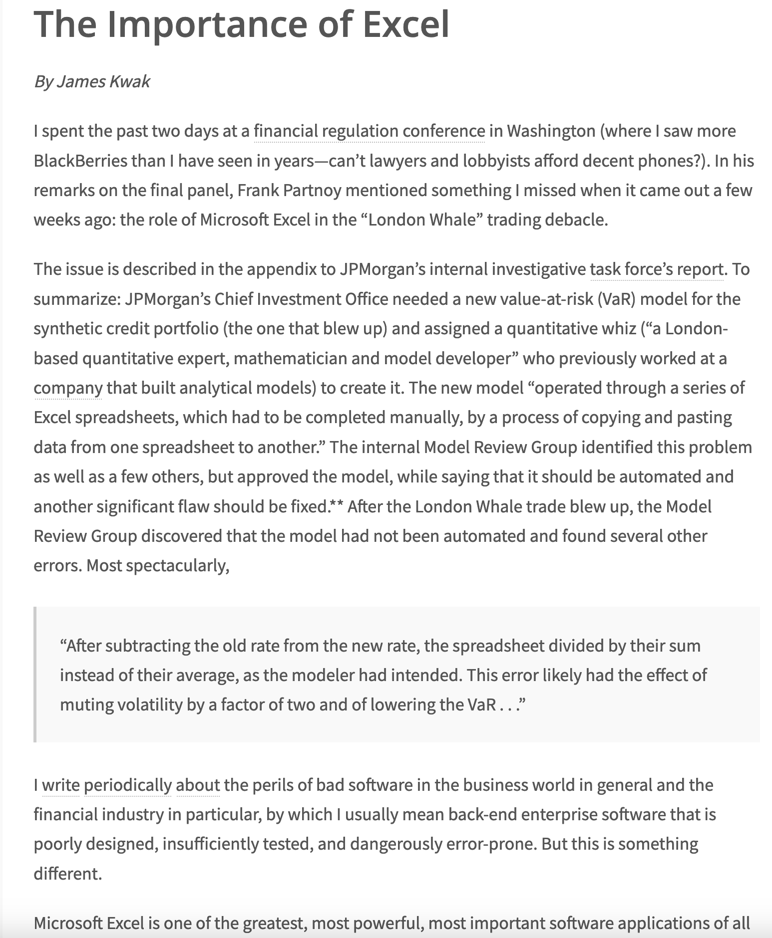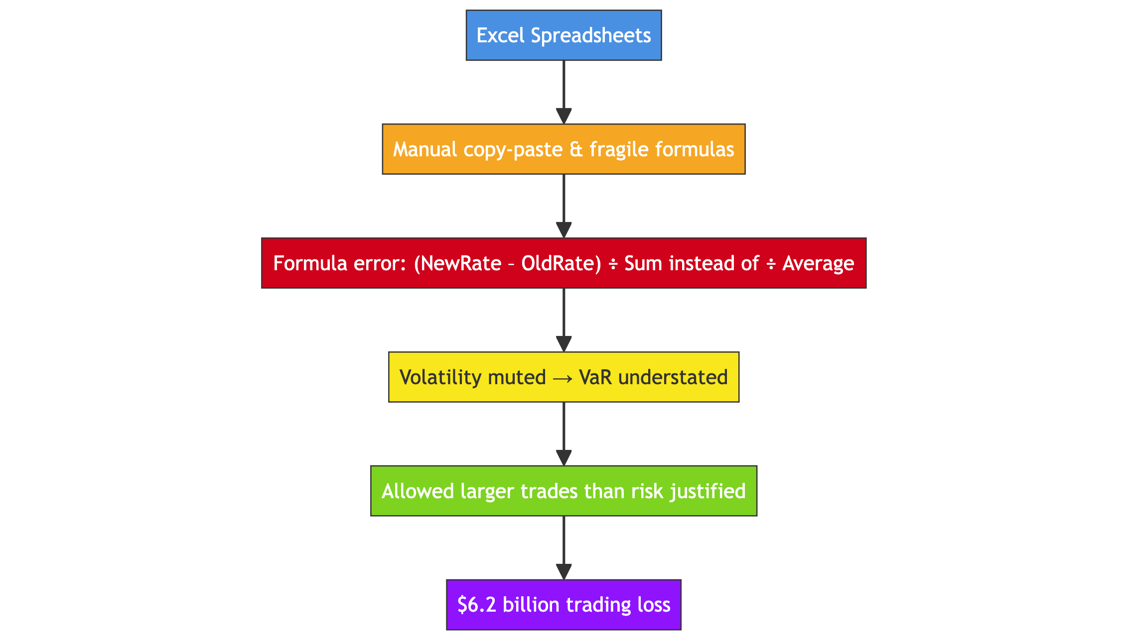 2012 London Whale: JPMorgan’s Excel-based risk model failures ($6.2B loss)