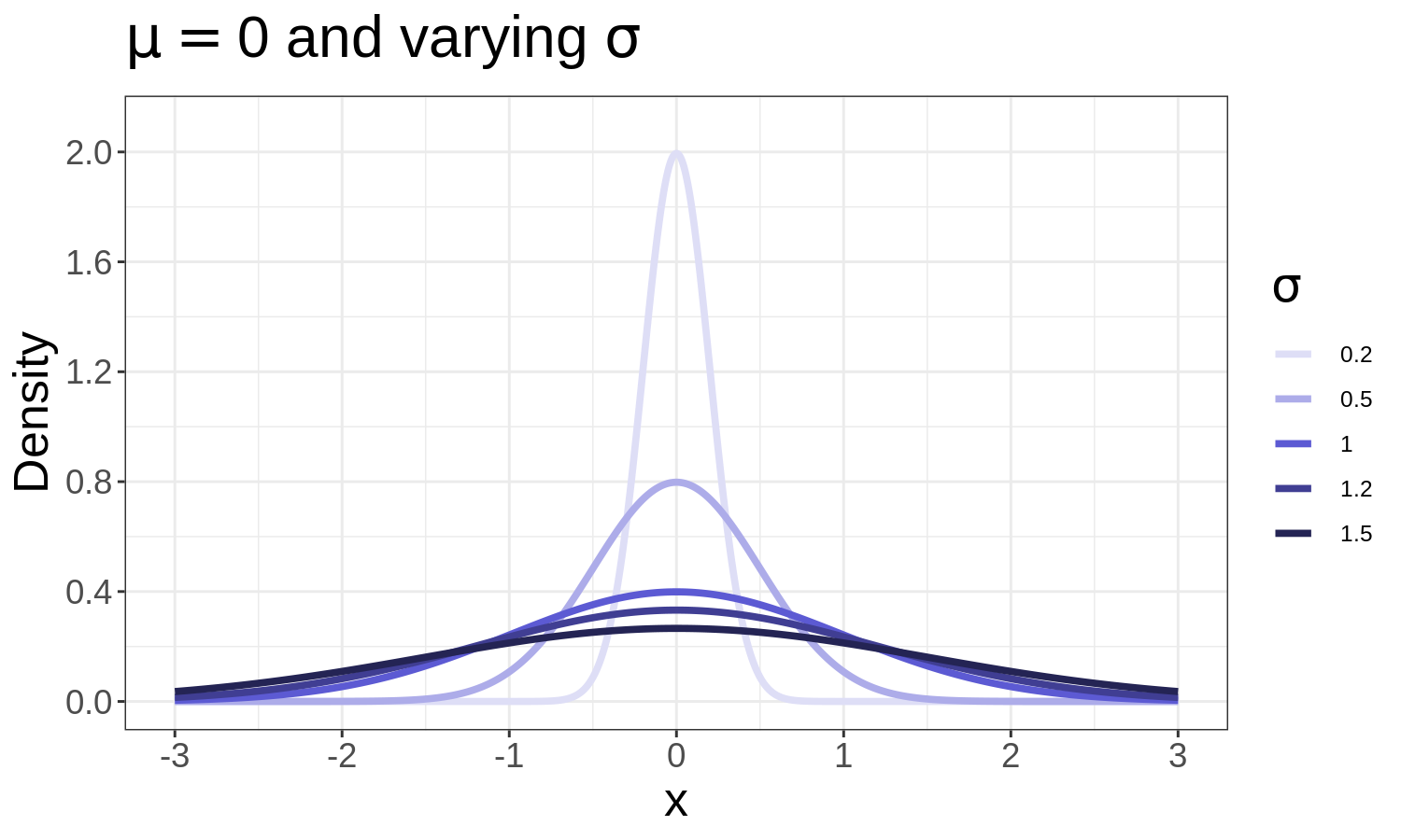 f(x; \mu, \sigma) = \frac{1}{\sqrt{2\pi\sigma^2}} e^{-\frac{(x-\mu)^2}{2\sigma^2}}