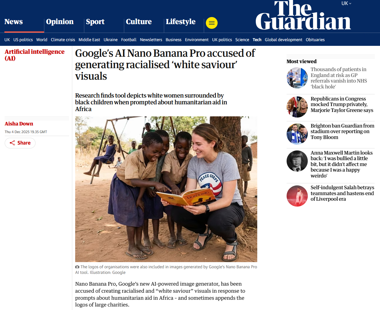 “Google’s AI Nano Banana Pro Accused of Generating Racialised ‘White Saviour’ Visuals.” The Guardian, December.