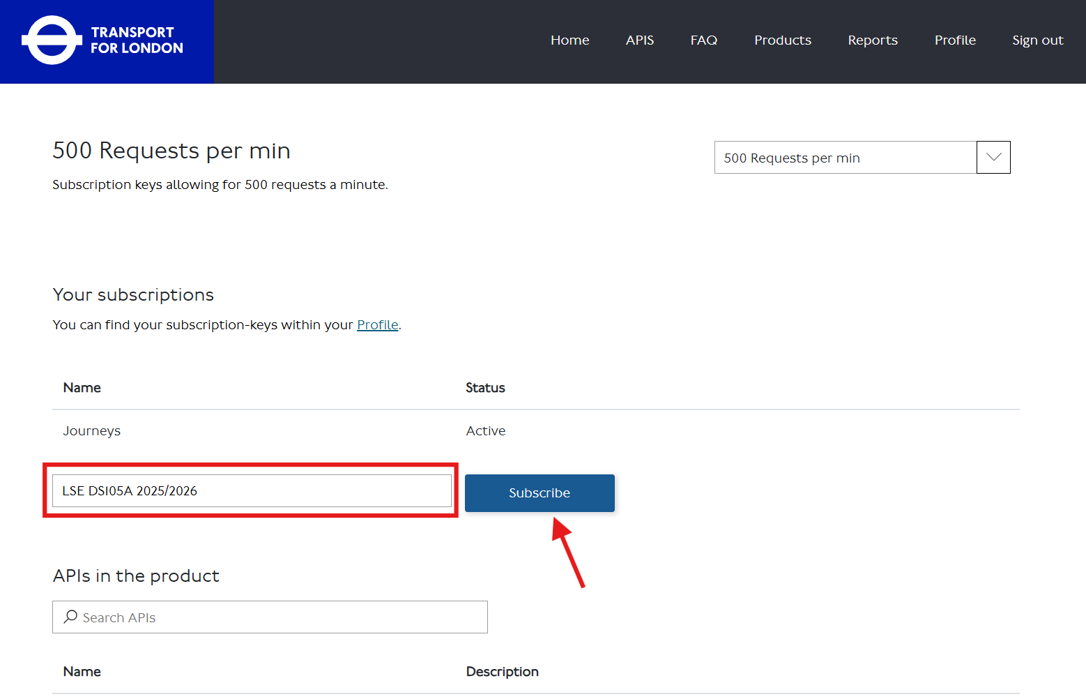 TfL requires us to explicitly register for their API key after we’ve signed up.