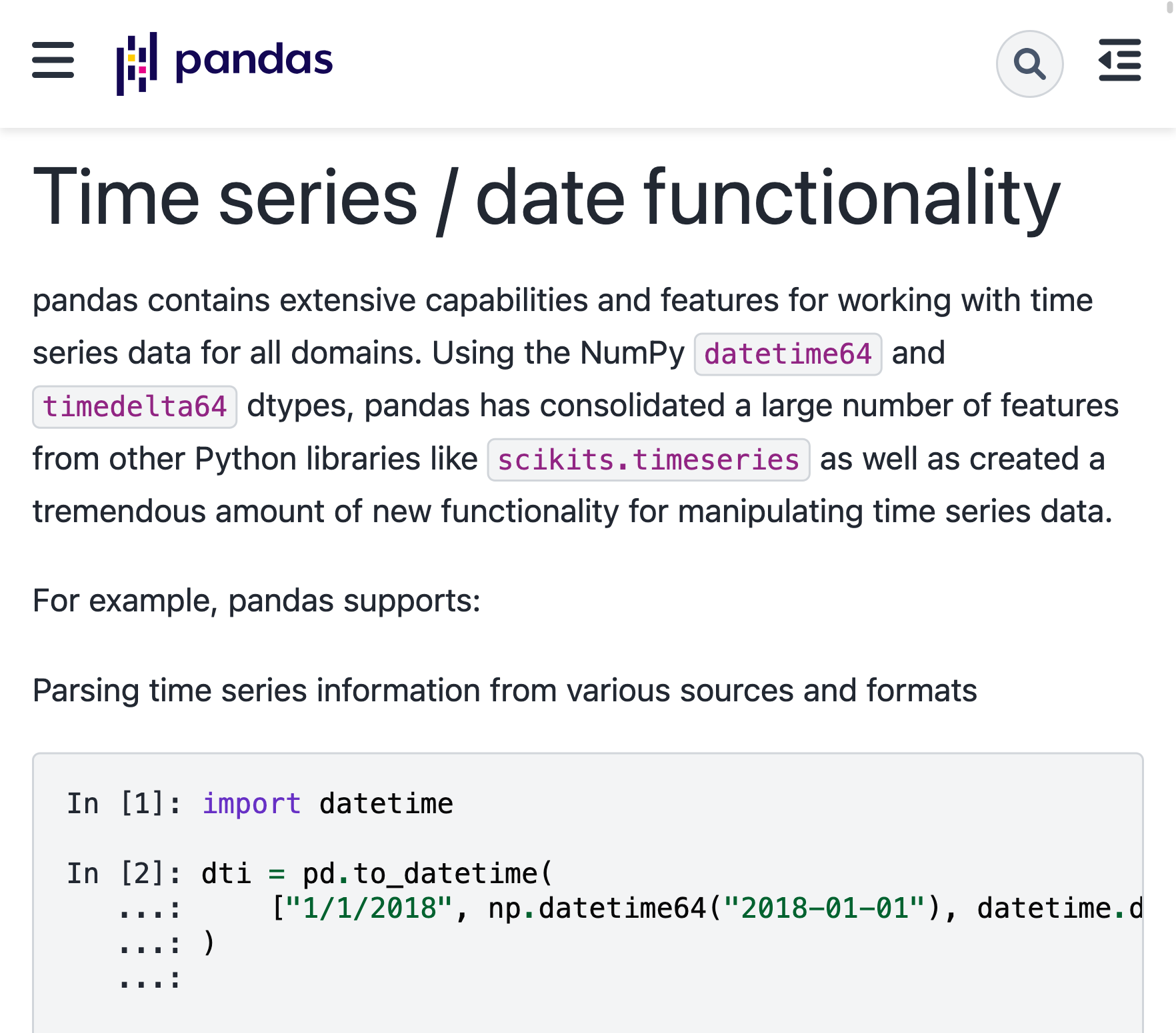 Most of the features that exist in the Python default datetime module are also available in the pandas library.