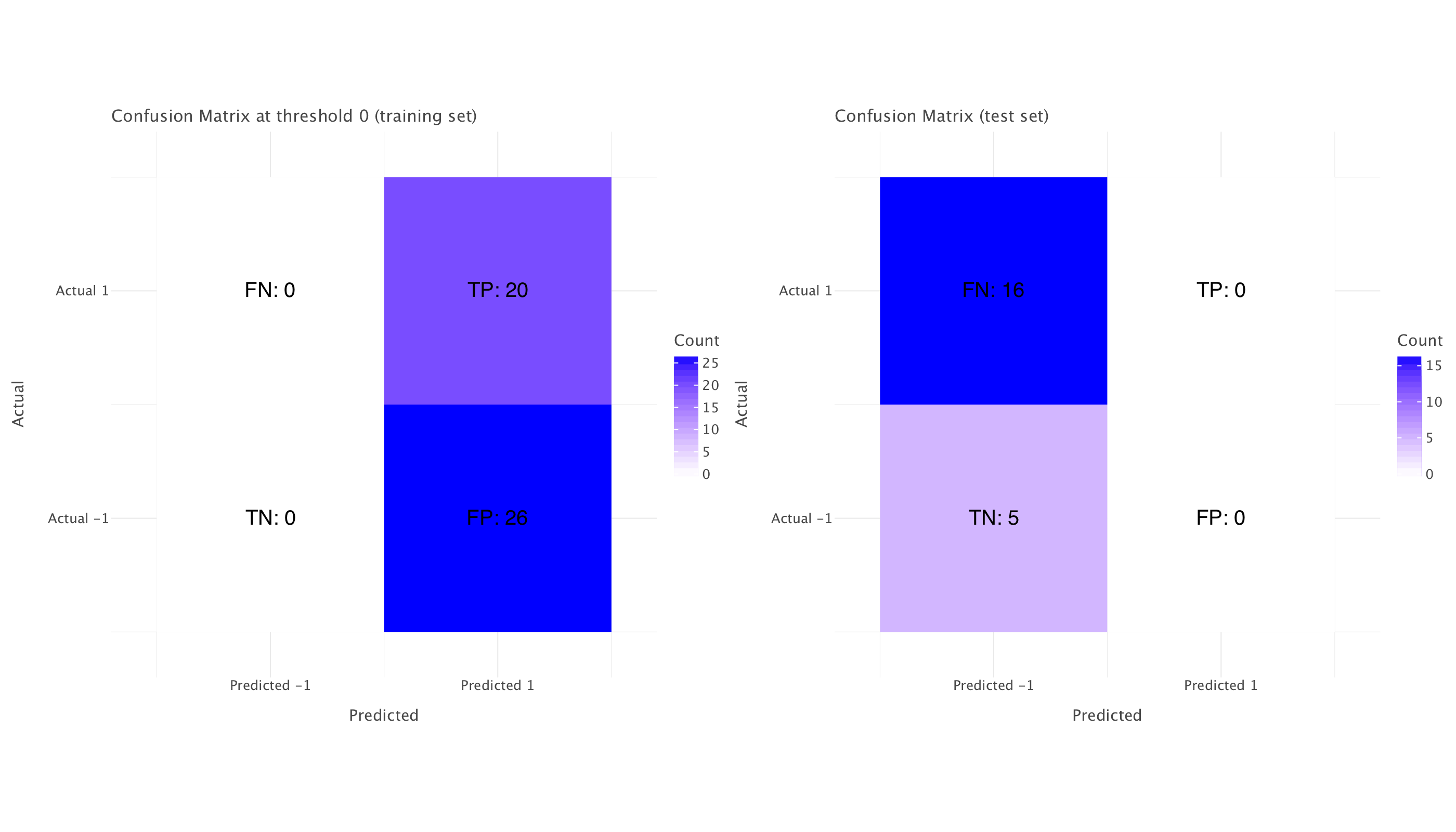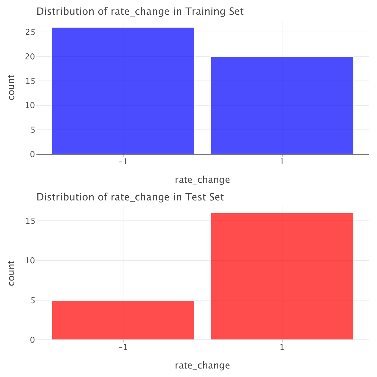 This is all due to the heavy class imbalance in our dataset and also to the data distribution shift between training and test set (different monetary policies in the periods covered by both sets!). We would be better served by a different training/test split and actually by explicitly modeling a policy shift!