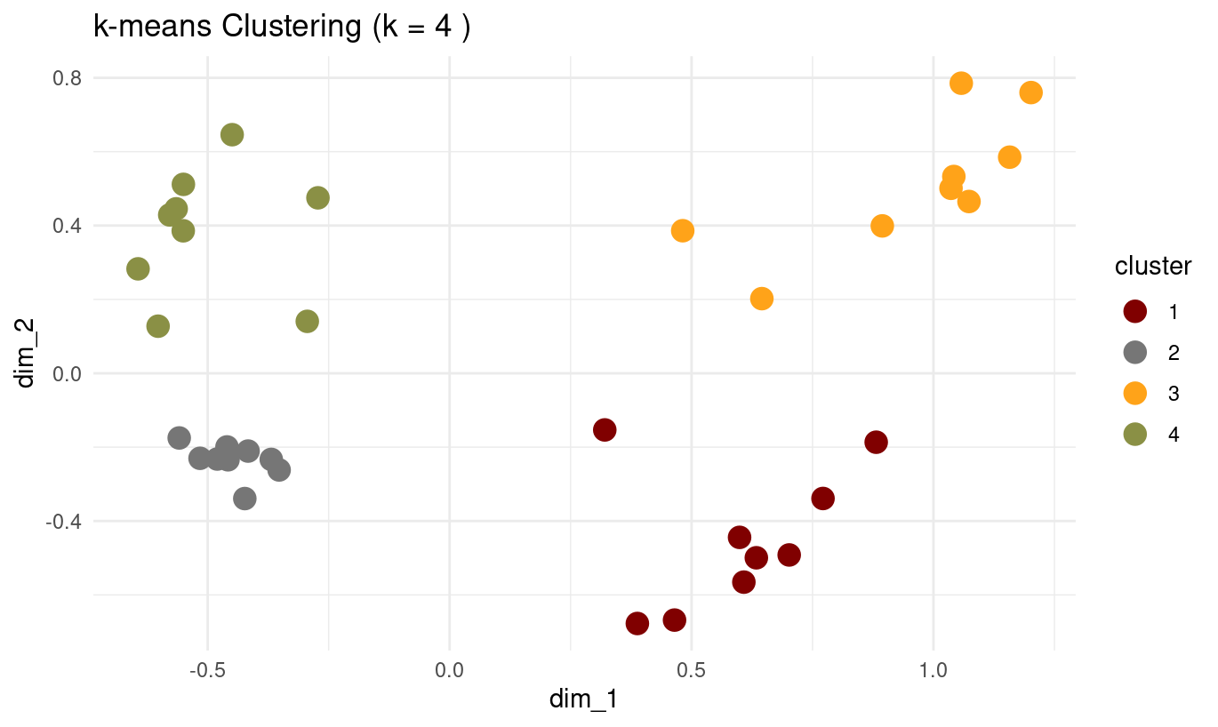 ggtitle(paste("k-means Clustering (k =", optimal_k, ")")) +