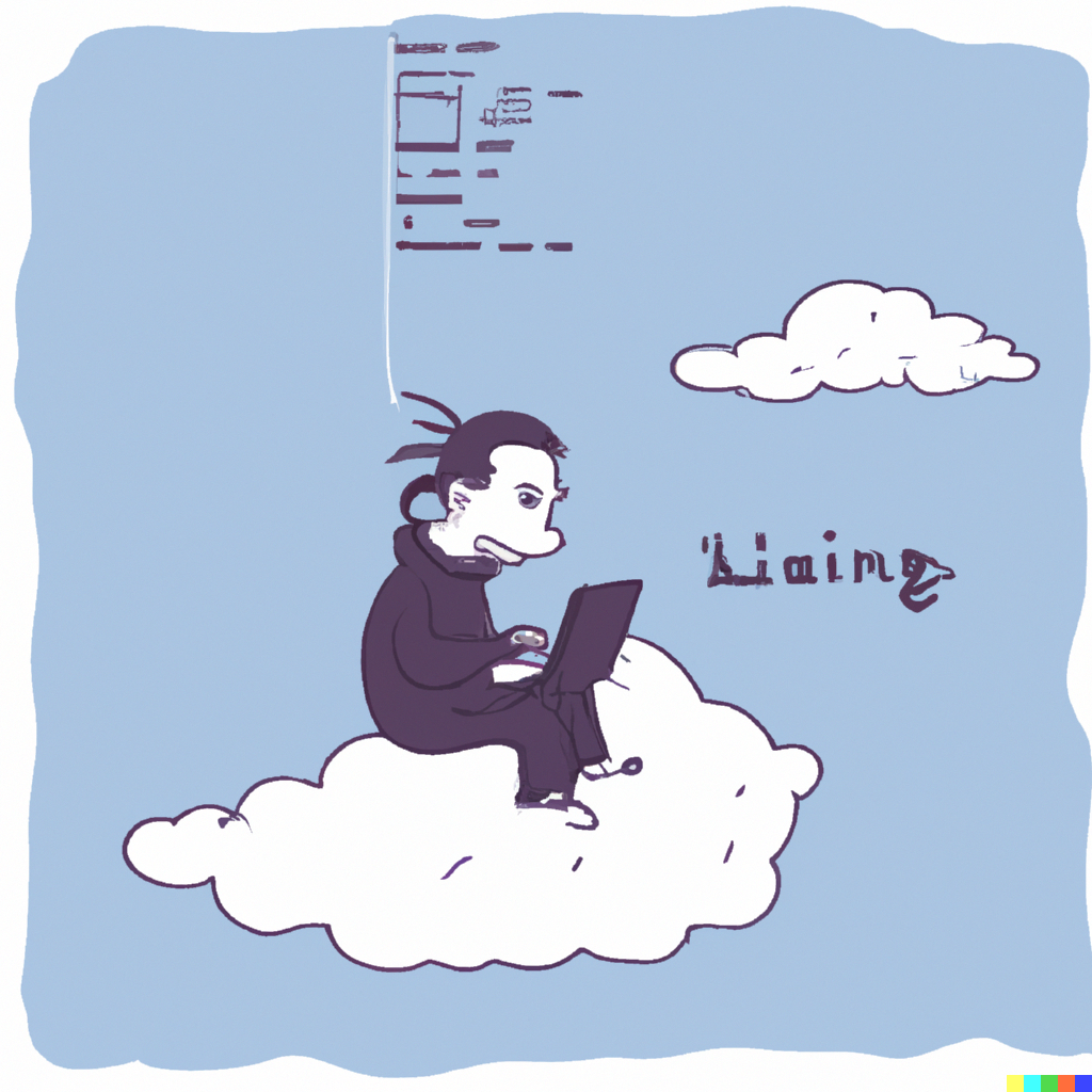 Image created with the DALL·E algorithm using the prompt: ‘a programmer sitting atop a cloud writing computer code, in the style of studio Ghibli’ 🤓