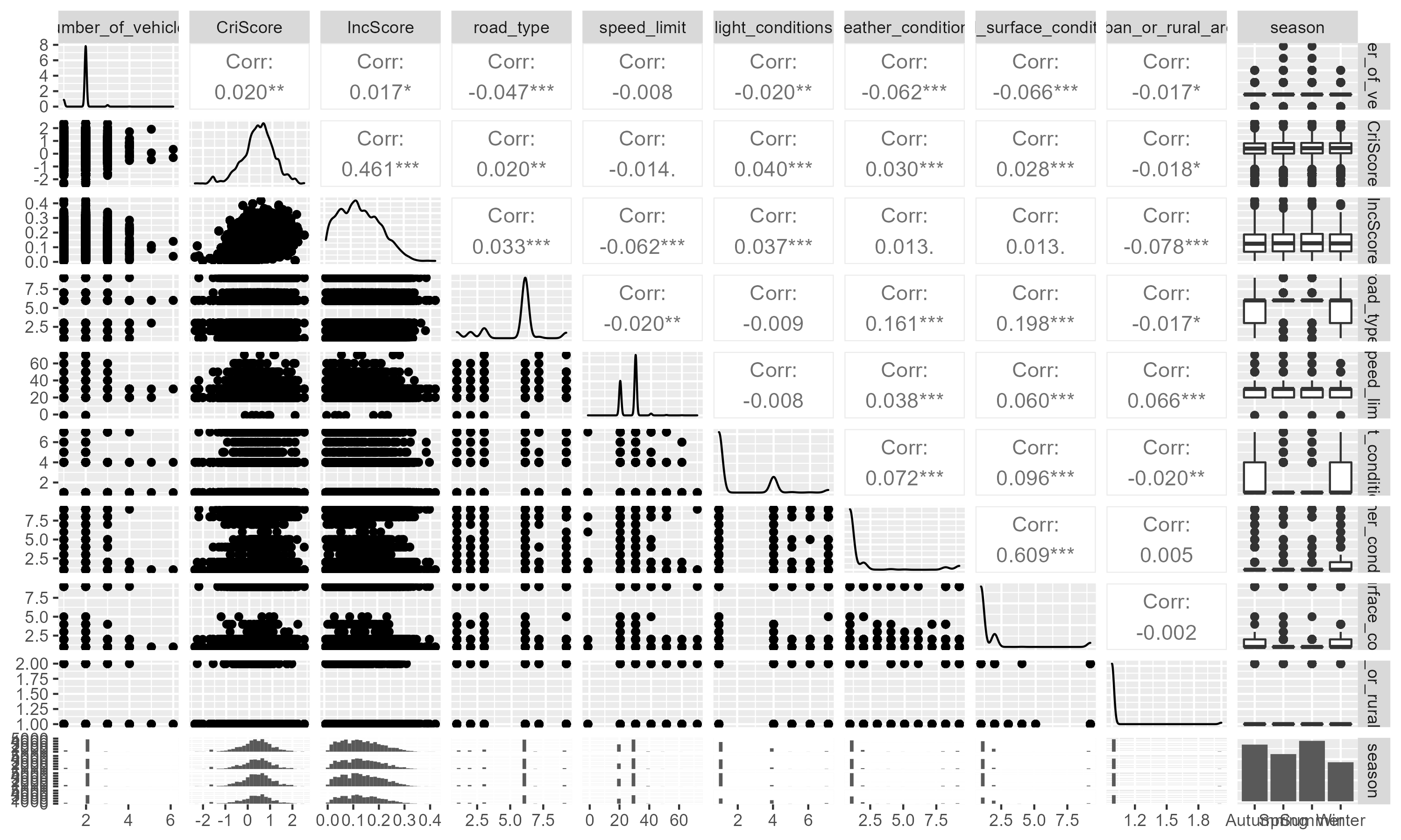 ggpairs plotđźš´ data from a cycling accident dataset we have compiled